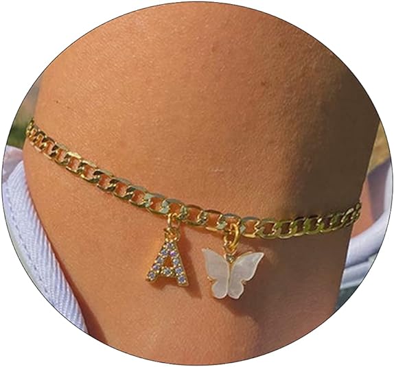 14K Gold Plated Dainty Butterfly Initial Ankle Bracelet